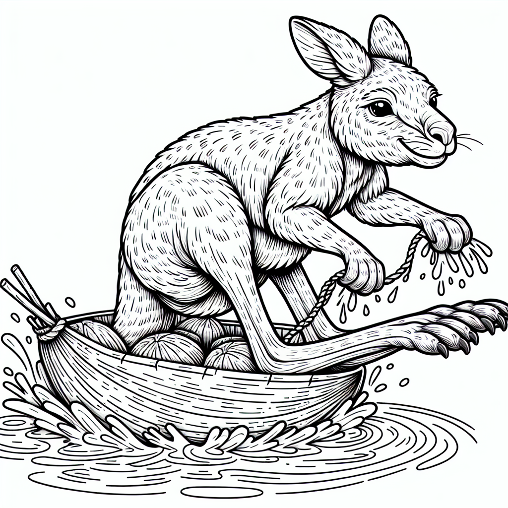 This determined kangaroo is paddling a canoe packed with coconuts! With splashing waves and movement in every stroke, it’s perfect for kids ages 5–8 who love action and animals.